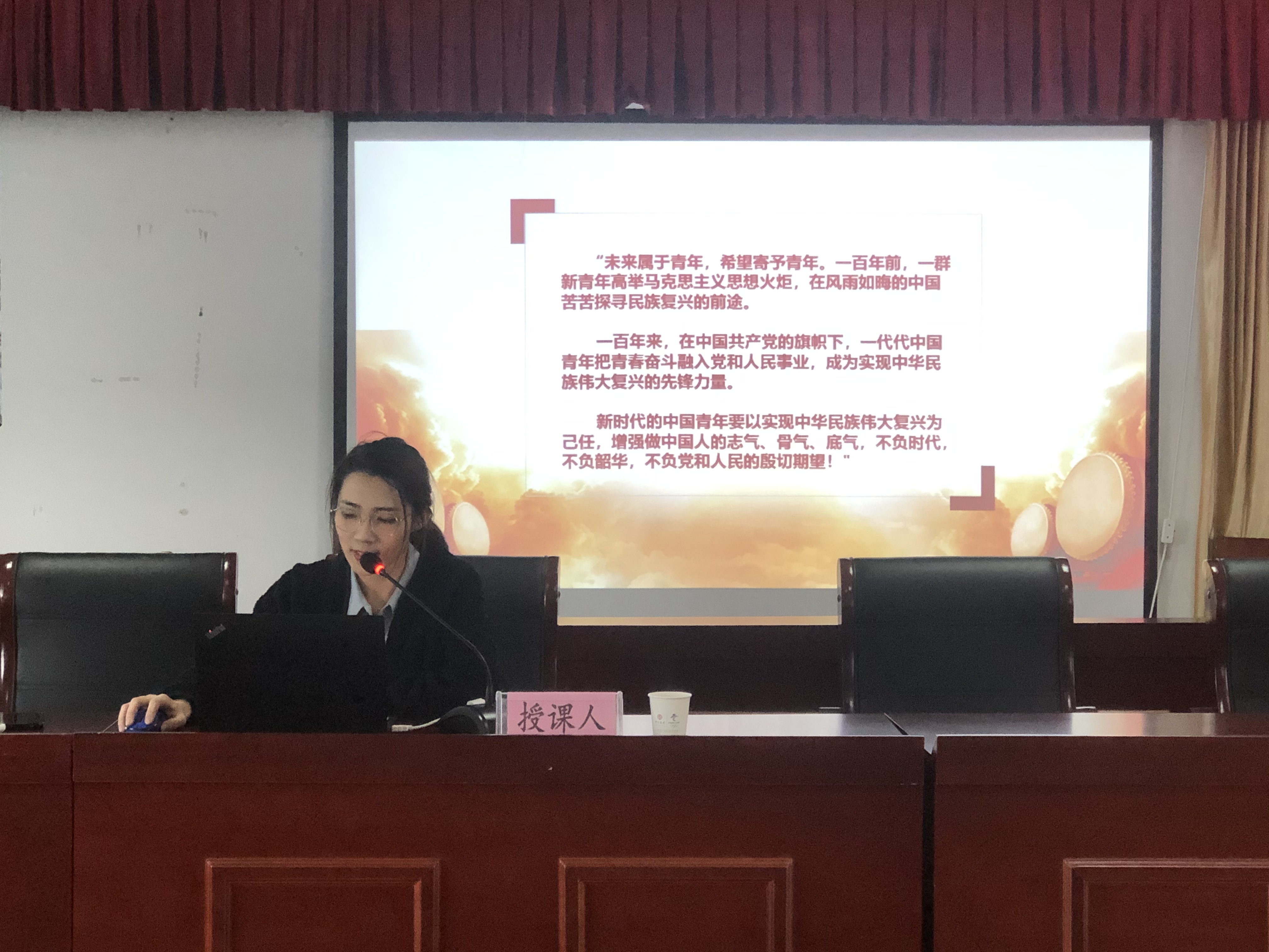 本次宣講以“百年恰是風華正茂”為主題,圍繞習近平總書記在慶祝中國共產(chǎn)黨成立100周年大會上,對青年一代的充分肯定、殷切勉勵、深情寄語,從“不負時代,初心不改擔使命;不負韶華,心有所信方行遠;不負黨和人民的殷切期望,奮斗不止譜新篇”三個方面進行深刻闡述。宣講會上,王迪通過視頻追尋革命先輩的光輝足跡。百年崢嶸歲月,眾多先輩不求顯達于世、不求暫得于己,不惜為了理想信念拋頭顱、灑熱血,用青春和生命書寫史詩。革命先輩們的事跡激勵我們,生逢盛世,作為新時代青年一代,要勇?lián)鷼v史使命,堅定前進信心,努力成為堪當民族復興重任的時代新人!