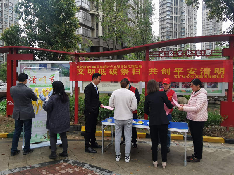 4月1日下午,市礦投公司黨員志愿者深入發(fā)能國際城社區(qū)開展宣傳活動,引導(dǎo)居民清明祭奠綠色出行,選擇獻(xiàn)花祭奠等文明、低碳的祭奠方式。
