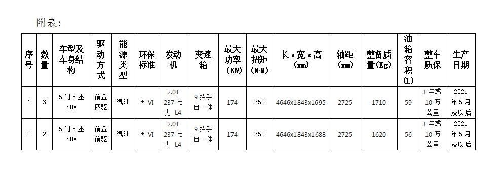 根據(jù)業(yè)務(wù)發(fā)展需要,滁州市興元商貿(mào)有限公司擬集中采購業(yè)務(wù)保障車輛共計(jì)5輛,詳情見附表。