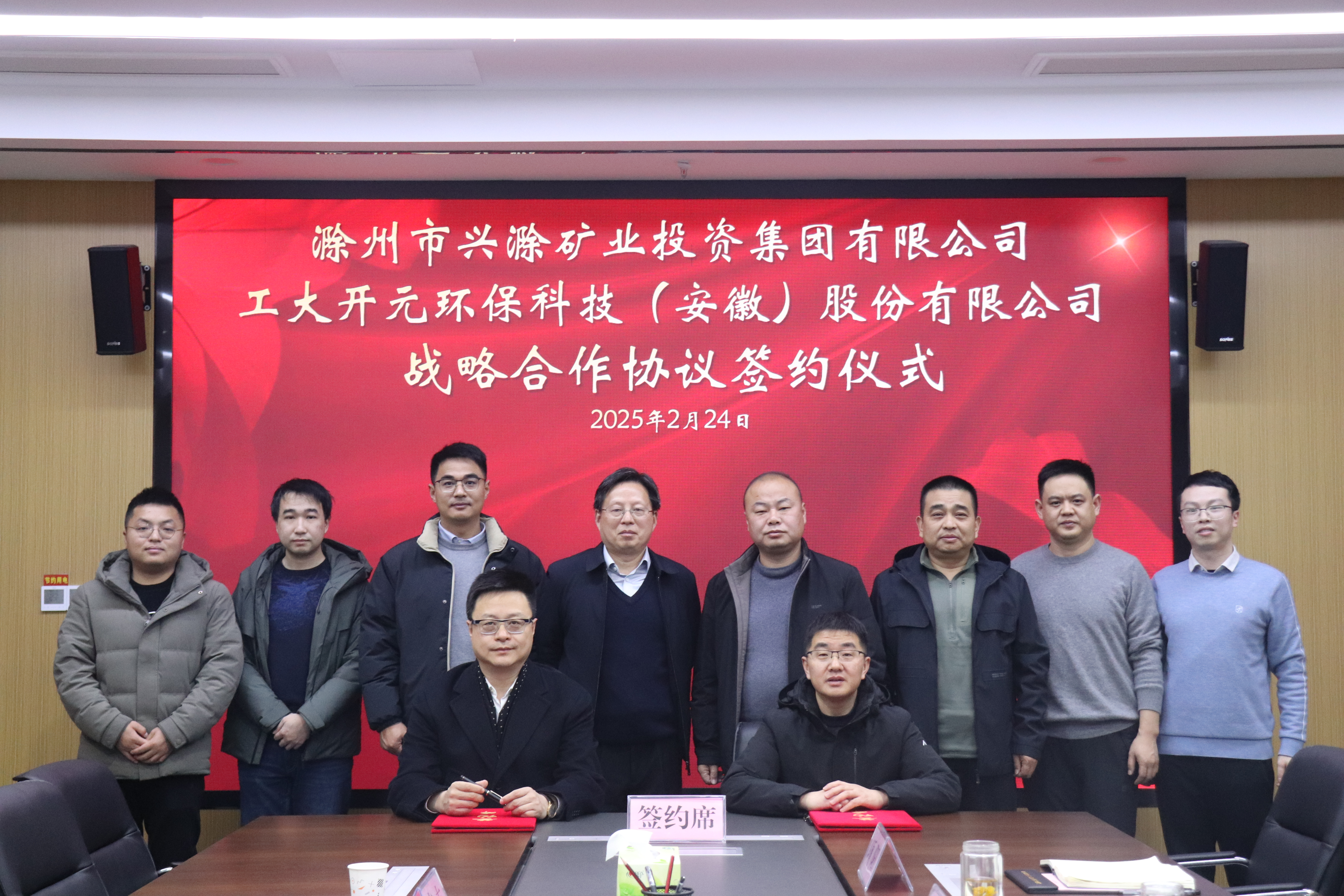 2月24日下午,市礦投集團與工大開元環(huán)??萍?安徽)股份有限公司簽訂戰(zhàn)略合作協(xié)議儀式在市礦投集團舉行。工大開元公司董事長陳斌、市礦投集團董事長王峰出席會議并代表雙方簽約,儀式由市礦投集團黨委委員、副總經(jīng)理湯國水主持。