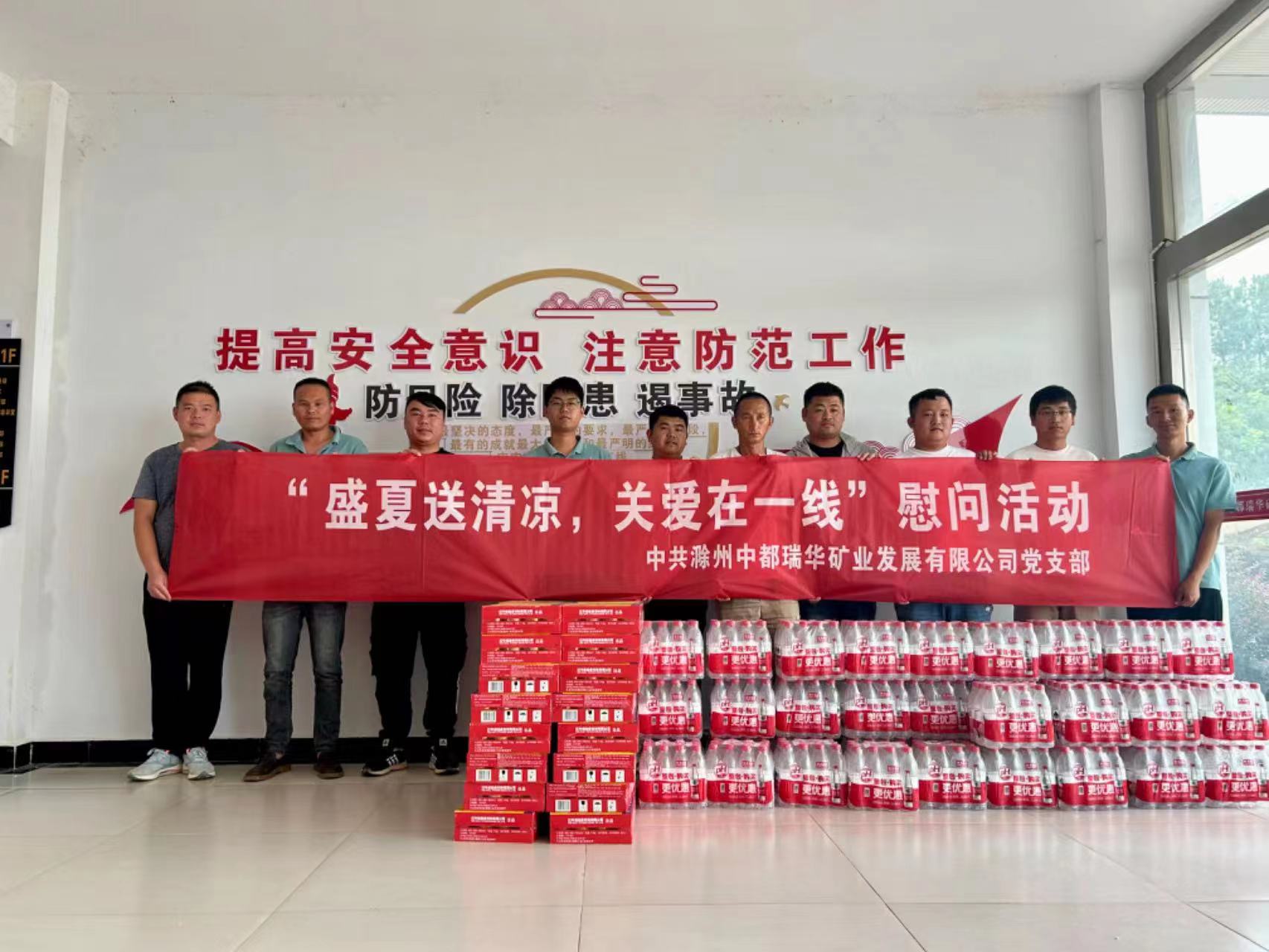 入伏以來,氣溫連續(xù)攀升。為關心一線員工身心健康,體現(xiàn)黨組織溫暖,7月28日,中都瑞華礦業(yè)黨支部組織為項目一線職工以及鄔崗、林山兩個運輸車隊送上防暑降溫物品。對他們冒著酷暑仍堅持在一線奮力工作的精神表示感謝,并叮囑他們要做好防暑工作,確保安全生產。